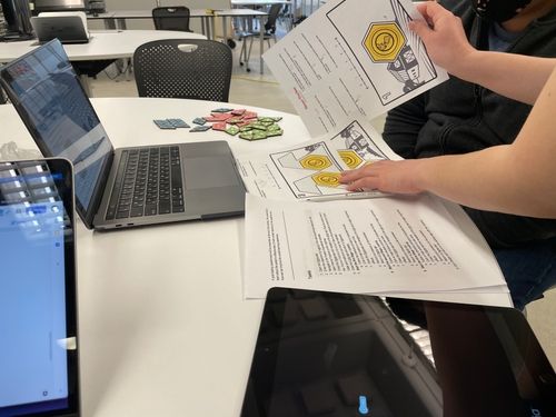 We developed an interface in Unity that uses a camera to display assets over an image target. Using Optical Character Recognition (OCR) This lets the laptop detect patterns on the worksheet made with the color tiles.